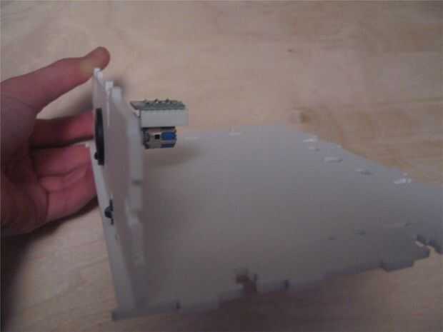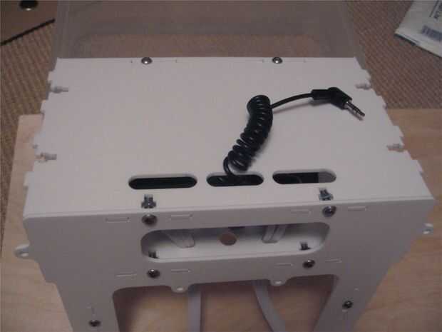 8. La parte superior de la carcasa va el siguiente, la ranura en la placa trasera y caen sobre el frente. Asegúrese de que cable el cable de audio a través de. (Imagen 9)