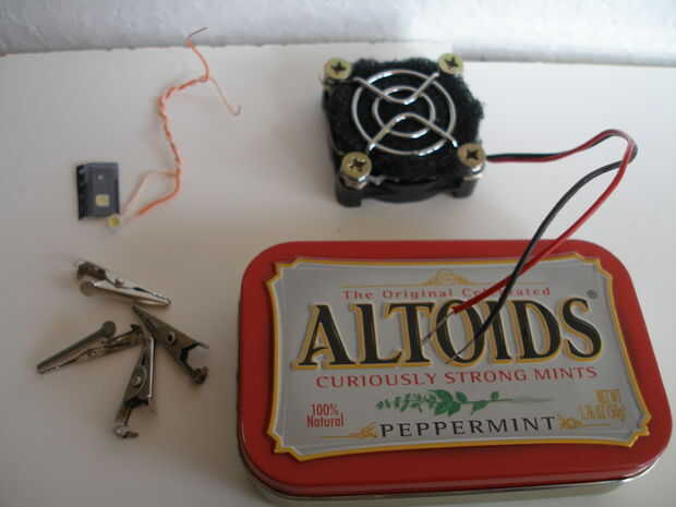 1 - 12V ventilador, mejor sería 4cm porque tenemos que ponerlo dentro de la bandeja de Altoids