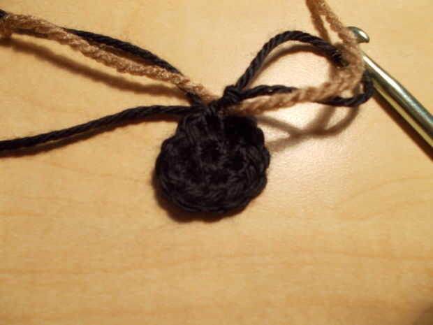 va uniendo el borde plano creado por rondas 5 y 6 a la cara de su pronto a ser ornitorrinco.