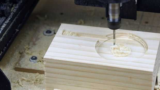 Presione tallar en easel.com y dejar que la máquina de cnc X-tallar su magia y tallar el soporte del cono y el teléfono.