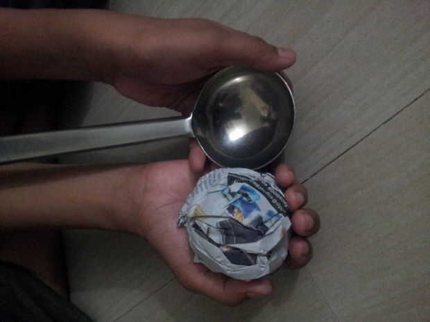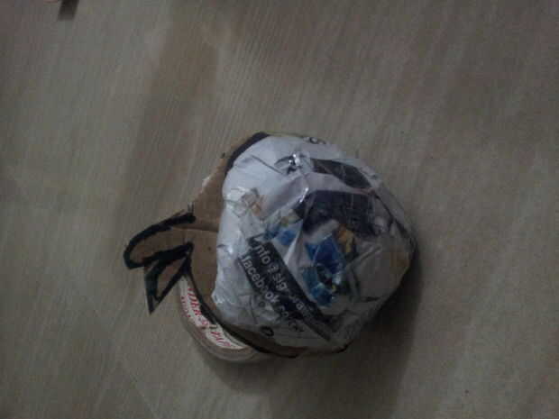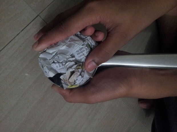 COSAS EL PERIÓDICO EN LA BOCA LA CUCHARA QUE TANTO COMO USTED PUEDE. LUEGO RETIRE EL PAPEL DE LA CUCHARÓN. AHORA SUJÉTELA CON CINTA. HACER ESTO DOS VECES PARA OBTENER EL CÍRCULO DE DOS PIEZAS. GUÍESE POR EL PEDAZO DE CÍRCULO PARA DIBUJAR LA CABEZA Y EL PELO TU ANGRY BIRD EN... LA CAJA DE CEREAL. AHORA LA CORTE. MANTENGA LA CARA ENTRE LAS DOS BOLAS DE PAPEL. SE UNEN CON CINTA.
