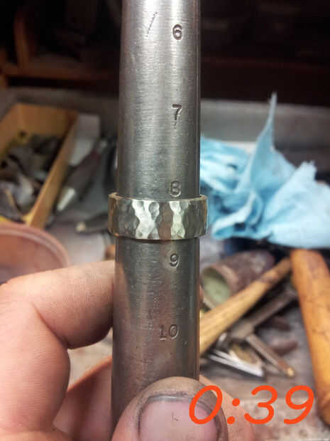 Estos van a ser su elemento decorativo para el anillo, así que compatible. Usar la misma fuerza con cada golpe y se superponen cada marca con los alrededor de él. Esto le dará una agradable apariencia aplanada. Nota el tamaño está cambiando a medida que martillo.