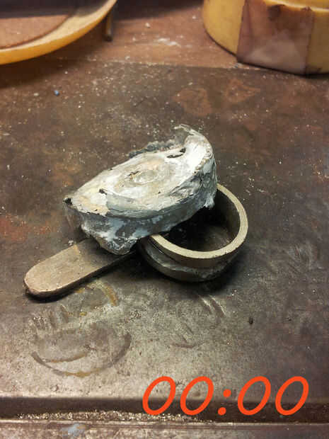 Para empezar estoy usando algunos chatarra 14k de oro blanco de fundición anterior y fabricaciones. Las medidas son las siguientes: 6 mm de ancho, 1,6 mm de espesor y tamaño 8 3/4. Para averiguar el hallazgo de la longitud de la circunferencia del anillo en el mandril anillo y multiplicarse veces PI (3.14159265359 o 3.14), entonces agregue dos veces el espesor del metal y que te llevará aproximadamente la longitud que usted necesita. Cuando un anillo que tener en cuenta que el anillo se estire y conseguir más grande, así que la figura aproximadamente 1/2 a 3/4 de una diferencia de tamaño dependiendo de lo duro que vas a golpear. La última medición que tiene que preocuparse es el ancho. Siempre Date espacio para trabajar (si puedes, he tenido situaciones en la que apenas tuve suficiente metal) y dese un milímetro a cada lado por si acaso.