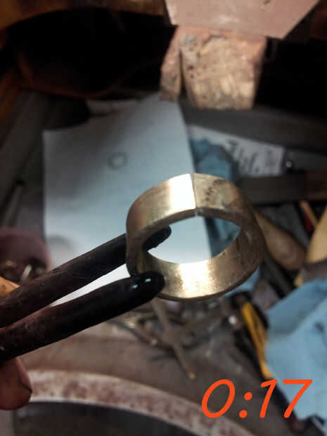 En este tutorial voy a mostrar mi proceso para crear un anillo de metal con incrustaciones de madera. Para este proyecto usé un trazador de líneas del aro de acero de http://www.bangleguy.com/ y una roja buck ojo burl cuchillo escala de http://www.ba