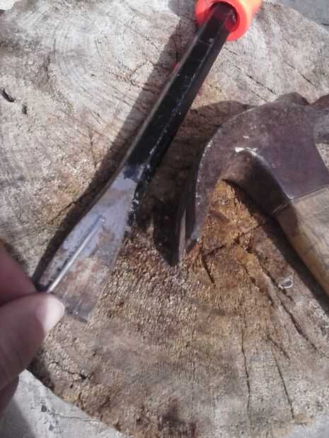 -Yunque / hacha / martillo segunda / placa (algo sólido y suave que puede vencer a metal contra sin que deforme) de acero [usé un cincel]