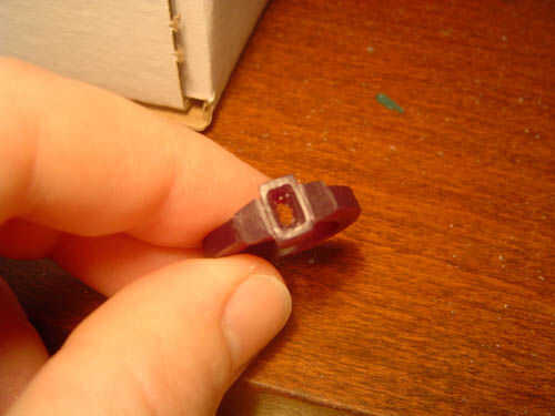 Utilice el tornillo pin a taladro un centro de agujero a través del asiento y use una cera plana sharp trabajo herramienta o buril para cortar el agujero cuadrado. En este punto puede cortar completamente a través del anillo, o cortar los asientos a una profundidad de 1,5 mm (como el siguiente paso abre a través de todo el camino).