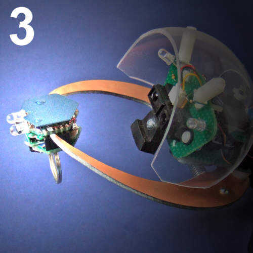 El anillo envía comandos de control remoto por infrarrojos sin teclas. En cambio, los comandos son enviados por la inclinación del anillo en varias direcciones. Un acelerómetro de 3 ejes mide la inclinación de un dedo o la mano y genera tensiones para el x, y y eje z. El microcontrolador Picaxe utiliza su construido en ADC (análogo a convertidores digitales) para medir la tensión y produce un número distinto de x, y y z variables entre 72-93.