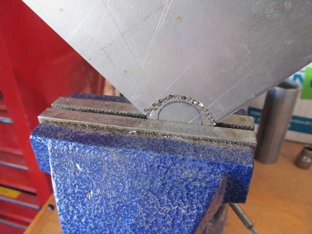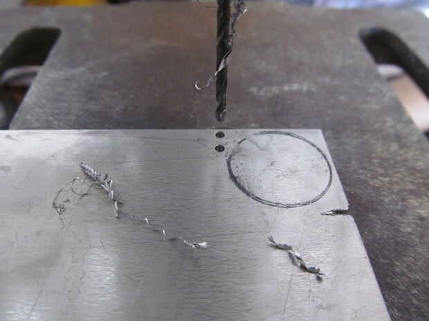 Primero probé usando una sierra de marquetería y un disco de diamante para cortar el metal. Crees que estaba tratando de cortarlo con un cuchillo de mantequilla. Terminé varios agujeros de perforación y ruptura libre en un vicio.