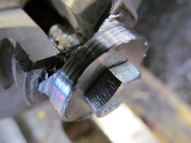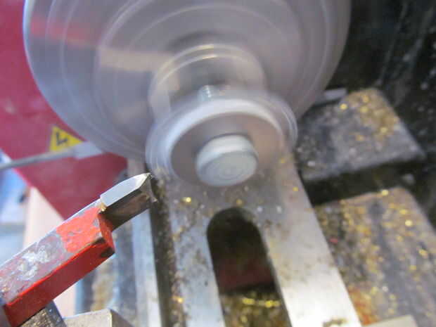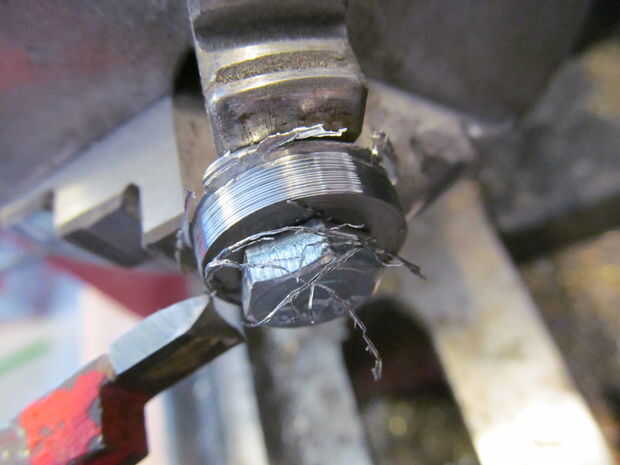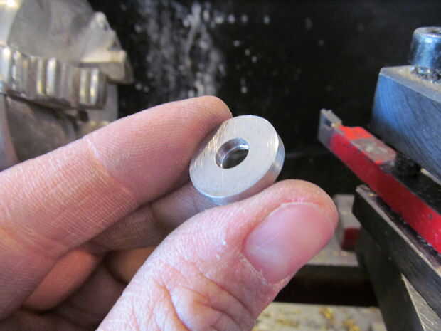 Realmente está haciendo una arandela de titanio. Nunca hice ninguna medición. A trabajado a máquina lo hacia abajo hasta que pensé que se veía bien. Es aproximadamente 3/4" de diámetro.