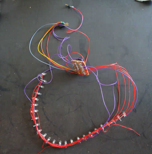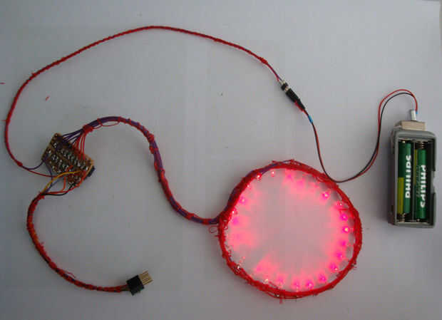 Al final tres anillos se utilizará para el vestido (5 de ellos están incluidos en el chaleco de astrónomo). Así que será un chip central de manejo de los patrones del ATTINY2313 sola. Este chip central ATMEGA328P se unirá a los sensores (por ejemplo inclinación o LDR) y dependiendo de pregunte para los patrones en los anillos de LED.