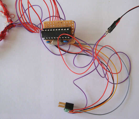 También añado seis cables y un conector para mi programador. Vea el dibujo en la madera del conector. Mayoría de las veces no quitar esta conexión del programador: me gusta cambiar los patrones y añadir más "significa" más adelante.