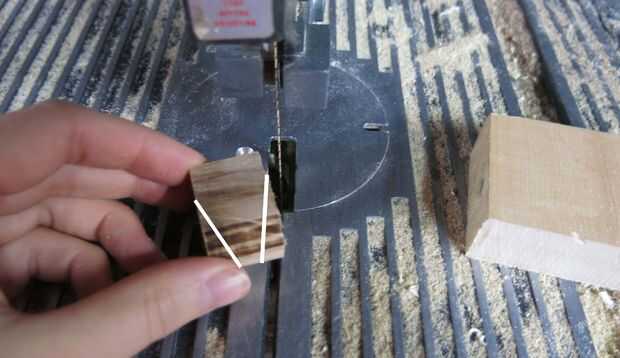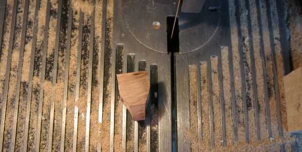 Sugerencia: utilizar otra pieza de madera para guía/mi anillo del empuje a través de la sierra. Esto es sólo una medida de seguridad que (esperemos) evitará que me corte los dedos!