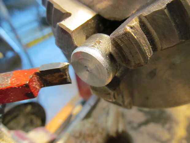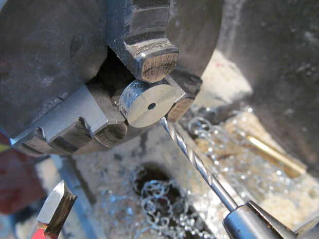 Aquí trabajado a máquina los extremos del espacio en blanco luego perforar un agujero a través de él. Tiraron el mismo pedacito de taladro en el torno. A continuación acuñó el espacio en blanco en colocando una bolsa de plástico sobre la broca. Finalmente fue trabajado a máquina fuera.