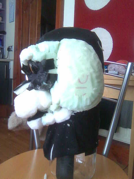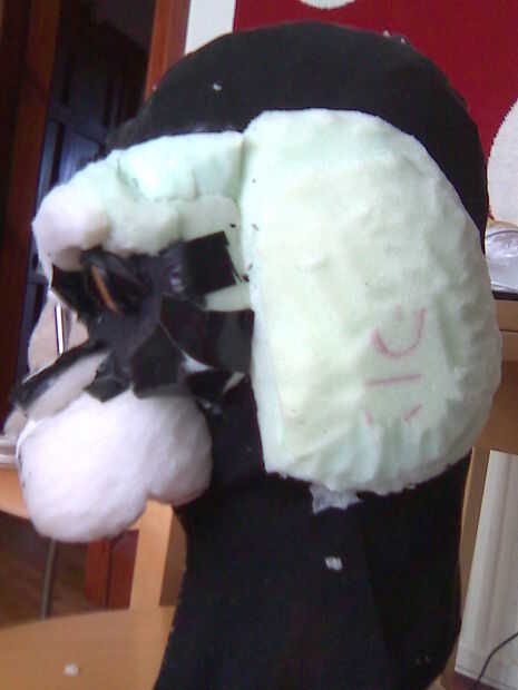 -En primer lugar, preparar los ojos cortando un pequeño trozo de espuma para hacer los respaldos de ellas recta (generalmente son cóncavas en la parte posterior). Pegar la espuma en los ojos.