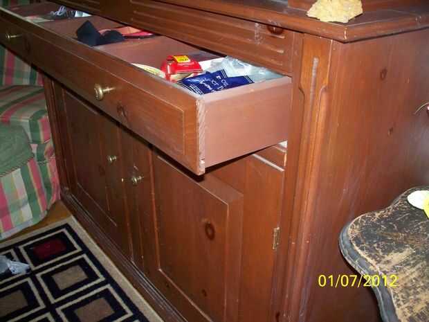 El cajón se armó como se mencionó anteriormente, con el tope simple joings y pegamento y clavos. Algunos enrutamiento era necesario hacer huecos para la parte inferior del cajón, que fue construido de material mdf o masonite 1/4 de pulgada. El frente del cajón es de panel levantado constructin, que será cubierto en la fase inferior de la puerta.