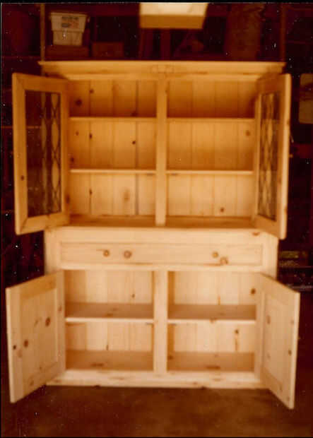 Para hacer la parte de atrás, tablas de pino de 1 x 5 fueron biselados de los bordes para dar el efecto de ranura y lengüeta a la parte posterior de la sección superior e inferior.  Cartabones se pueden lograr con un router, una tabla vio, o material de la lengüeta y el surco es precortada disponible.