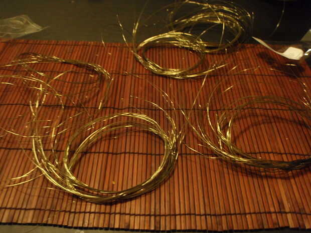 Para comenzar con usted tendrá un montón de cables cortados, sobre 110-120 por un grueso árbol. Usted debe cortarlas en tiras de unos 50 cms de largo, no tiene que ser exacta. Después de un tiempo podrás decir cuánto cada pieza debe ser cuando tire el carrete y no necesitará medir ya. Recuerde, si está utilizando un pequeño cable de calibre, se usará alambre más corto, y cable de calibre mayor será más largo.