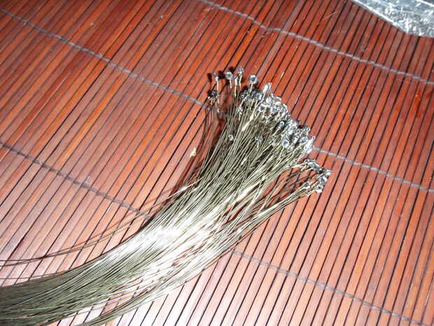 Añadir tres de los granos de la semilla (o una bola grande) en el centro de cada alambre y gire para garantizar para aproximadamente la mitad un cm - un completo cm cada uno, repeat para cada filamento. Se trata en gran medida la parte más lento el proceso, especialmente si se están utilizando los granos de la semilla.