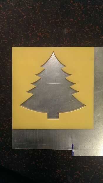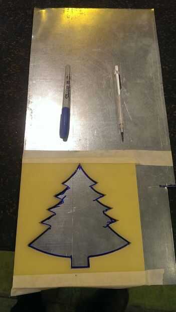 • Recortar la plantilla de papel y usar un palillo del pegamento para adherirla al metal