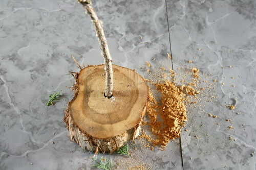Meter la rama en el agujero.  Use pegamento para madera para sujetarlo si es necesario.