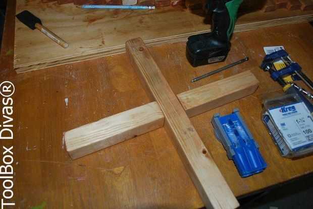 La base del árbol se hace utilizando los 2 × 2. Usando tornillos de bolsillo y madera pegamento Fije las dos piezas pequeñas de × 2 2 a la pieza central más grande.