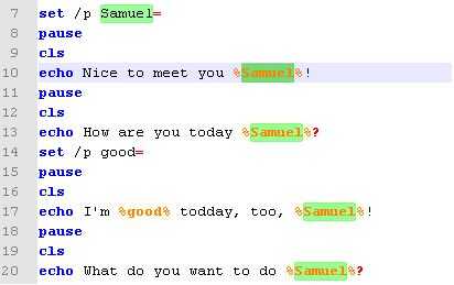 Convierte en la opción para ir a una sala donde escribió "set /p nombre =".