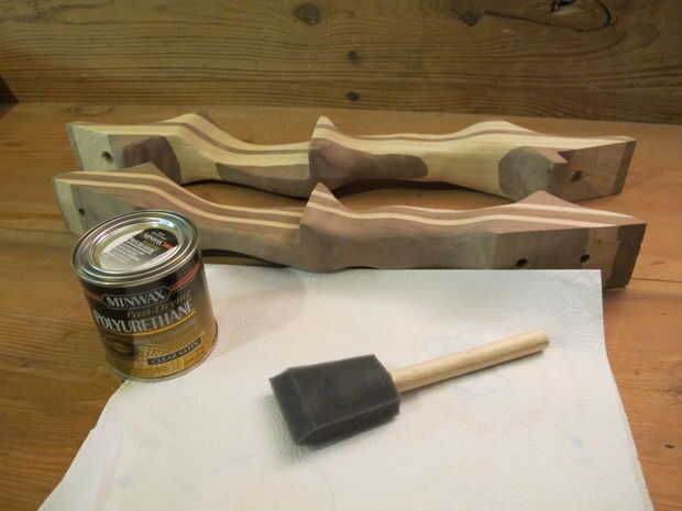 Tiempo para todas esas marcas de herramienta y arañazos de la arena!  Fui hasta ~ 400 grit con el lijado.  grano 220 debe estar totalmente bien.   Después de lijar, limpiar el polvo y cubrir con algún acabado.  Apliqué dos capas de acabado poliuretano satinado lijado entre cada una con papel de lija de grano 400.