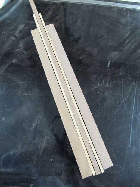 RIP (corte con el grano) todas las tiras a la misma anchura en una sierra de mesa. El ancho que usted debe apuntar para es un 1/8" más ancha que la parte más ancha de la estación de esquí. Para mí era unos 2" con ambos juegos de esquís. 1/8" excesiva en la canalización vertical se eliminarán posteriormente al lijar.