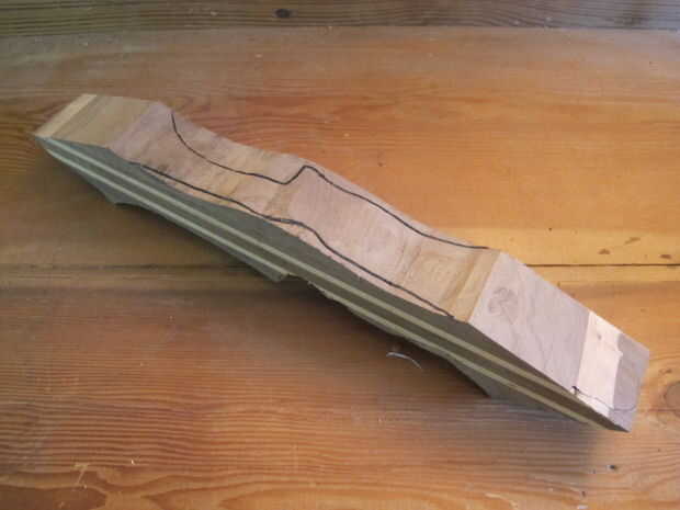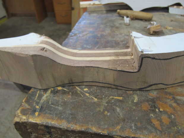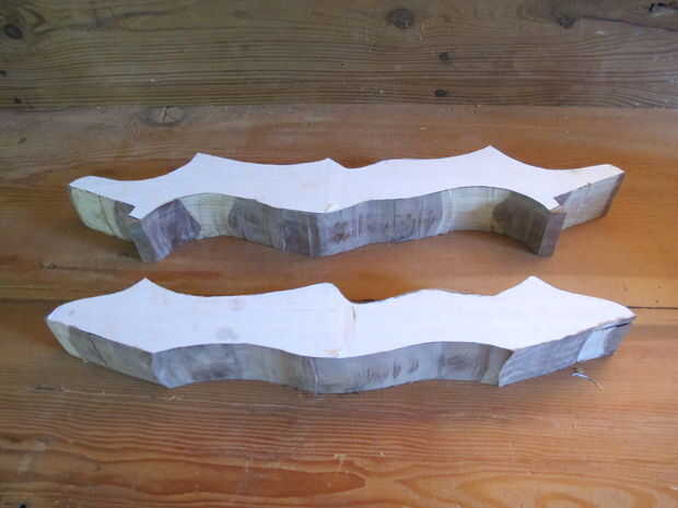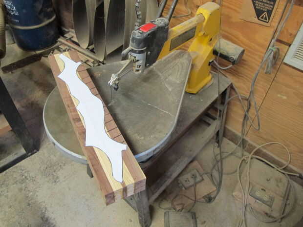 Ahora es tiempo para cortar el estante de la flecha. Coloque el tubo vertical de lado y dibujar en la forma de la plataforma. Si tienes una sierra de banda, la plataforma de corte es bastante simple – simplemente hacer lo mismo igual a rough-cut la forma de la canalización vertical. Si sólo tuvieras una sierra como yo lo hice puede que necesite usar un cincel para este paso. Más sierras puede solo cortar madera hasta dos pulgadas de espesor. Las tabicas diseñé están más cercanos de 3-3 ½" amplia al borde.