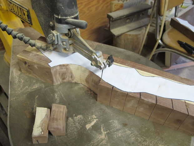 Después de efectuar todos los cortes de alivio, iniciar en la curva. Como llegar a los cortes de alivio las piezas sólo caerá lejos como se muestra aquí. Esto proporciona un punto de parada natural en cualquier lugar a lo largo del corte.