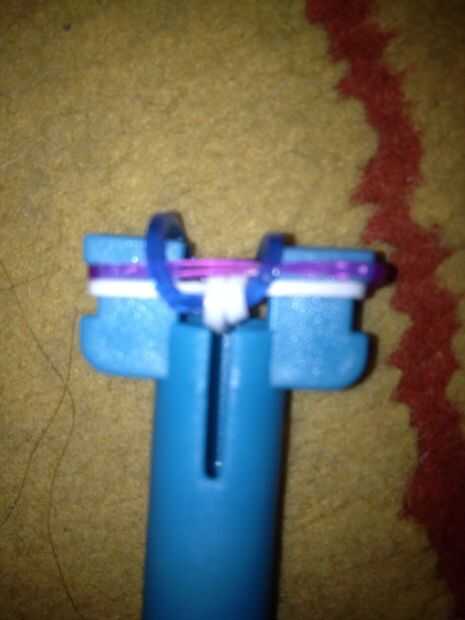 Poner otra banda en la herramienta y la banda inferior del lazo. Repita hasta que la pulsera sea lo suficientemente largo como