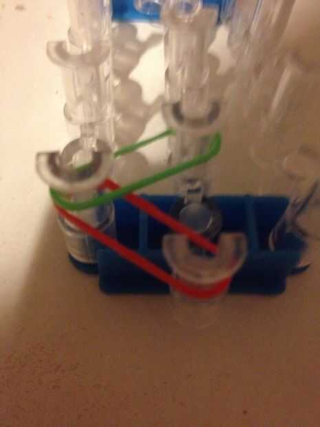 Paso 1: materiales!!! Telar o los dedos o una herramienta, gancho, bandas, clipPaso 2: 1 banda Colocar una banda en una x en la herramientaPaso 3: siguiente Lugar 2 bandas más en la herramientaPaso 4: bucle! Agarrar la banda inferior y coloque encima