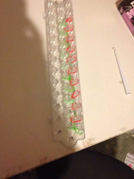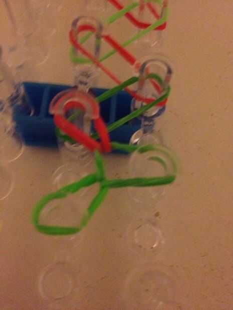 Paso 1: materiales!!! Telar o los dedos o una herramienta, gancho, bandas, clipPaso 2: 1 banda Colocar una banda en una x en la herramientaPaso 3: siguiente Lugar 2 bandas más en la herramientaPaso 4: bucle! Agarrar la banda inferior y coloque encima