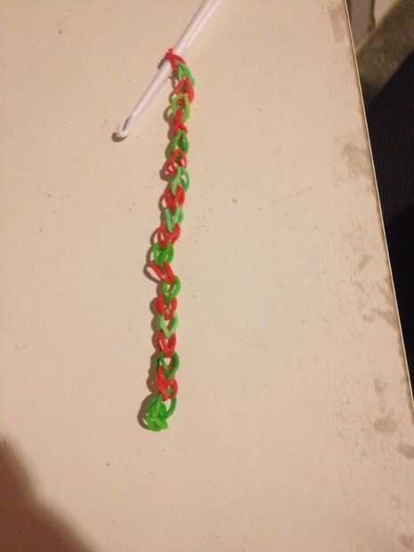 Paso 1: materiales!!! Telar o los dedos o una herramienta, gancho, bandas, clipPaso 2: 1 banda Colocar una banda en una x en la herramientaPaso 3: siguiente Lugar 2 bandas más en la herramientaPaso 4: bucle! Agarrar la banda inferior y coloque encima