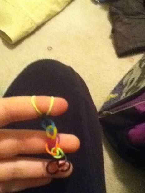 Paso 1: materiales!!! Telar o los dedos o una herramienta, gancho, bandas, clipPaso 2: 1 banda Colocar una banda en una x en la herramientaPaso 3: siguiente Lugar 2 bandas más en la herramientaPaso 4: bucle! Agarrar la banda inferior y coloque encima