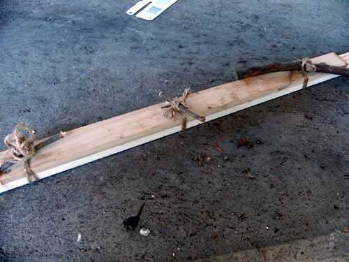 Esto es bastante autoexplicativo, simplemente Asegúrese de que obtener el pegamento distribuido más uniformemente que esta en esta foto. Use palos y cuerda como una pinza y la pieza hasta su curado lo suficiente como para liberar. Esto realmente debe tomar unas horas pero como soy muy impaciente, esperando media hora y entonces comenzó a tallar. No, que solo mete cosas a en pasos posteriores. Hagas lo que hagas, no trate de doblar el arco hasta que el pegamento se seque bien. Esto solo hace pop aparte.