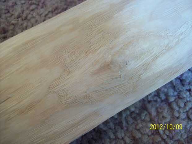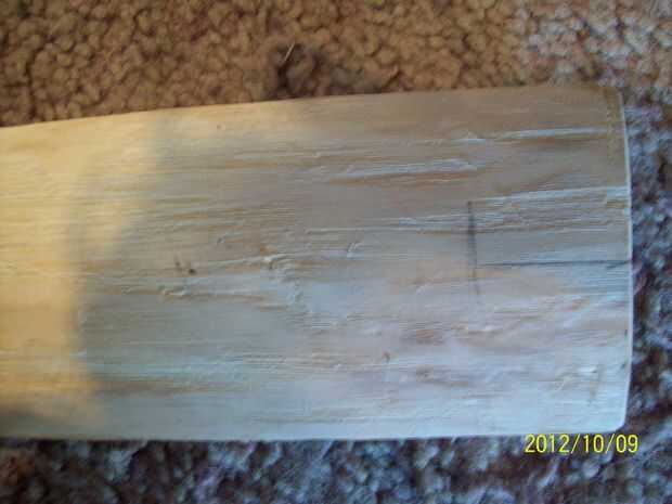 Persiguiendo un anillo es una técnica utilizada para bajar toda la parte posterior de la madera a un solo anillo de crecimiento y quitar cualquier mala madera fuera de ese anillo. Mi madera es error dañado en la parte posterior para que se eliminar los cuatro primeros anillos. Para este paso puede quitar todos los cuatro anillos de una sola vez, o puede quitar tres ahora y terminar el último anillo cuando el arco está siendo maltratado hacia fuera. Dejando una parte delgada del anillo sobre su meta final ayudará a proteger la espalda de golpes y arañazos, así como dándole más tiempo a la práctica antes de terminar la parte de atrás. El número de anillos que se tiene que quitar depende de la condición de su bastón. Si el pentagrama está en buenas condiciones, puede que necesite quitar sólo un anillo o solo la parte de atrás de la arena un poco.