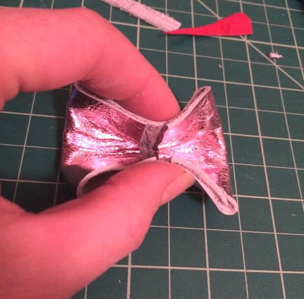 Pizca de delantero centro para tocan extremos pegados. Luego pellizque hacia atrás para crear un doblez más y forma del arco.