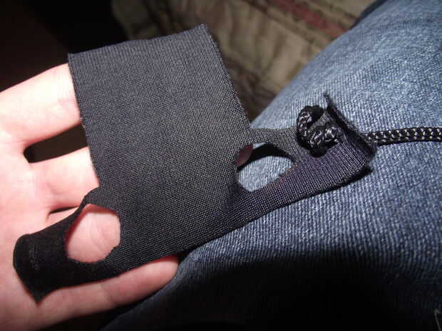 hacer un arnés de emergencia. Nota: no se debe usar con escalada sólo en situaciones de emergenciaPaso 1: Paso 1 Meter un bucle de la correa en su venda de la cinturaPaso 2: Paso 2 Pasar ambos extremos entre las piernasPaso 3: Paso 3 Inserte los extr