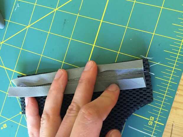 A menos que usted es una costurera maravillosa, o tienes acceso a una máquina de encuadernación de calidad de producción, su enlace es probable que no se verá perfecto. Como se puede ver en mi producto final, hay muchos baches en mi prototipo. Ideal puede utilizar enlace de estiramiento, pero no he podido encontrar alguno para este proyecto.