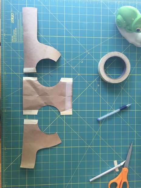 Imprima el patrón proporcionado y recortarlo. Los colores son para referencia cuando piecing juntos el patrón, pero no estrictamente necesarios para la impresión en color - sólo puede hacer referencia a la computadora. Hice mía utilizando papel kraft (similar a una bolsa de supermercado de papel), pero puede usar impresora regular papel si es todo lo que tener a mano. Cortar las piezas del patrón.