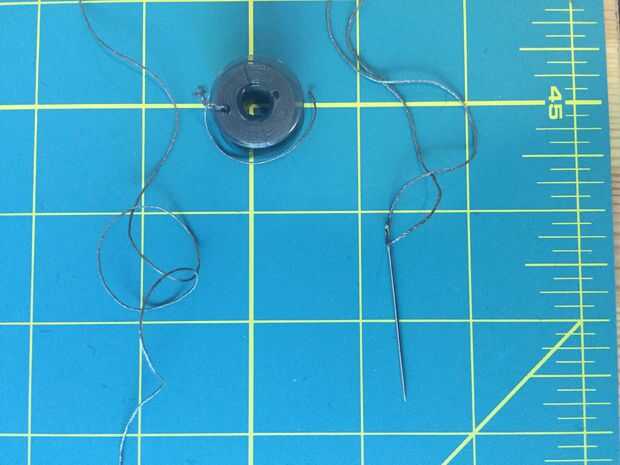 Hilo que la aguja con hilo conductor. Ser paciente, el hilo puede fray.