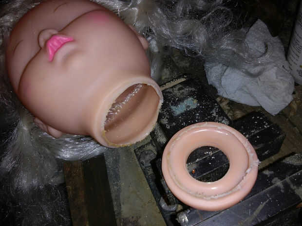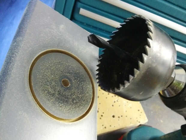 Usted necesita algo para montar la cabeza. Opté por usar mi sierra que era el más cercano en diámetro al cuello de la muñeca para recortar un disco de MDF. Si lo estaba haciendo otra vez que podría utilizar madera (porque el MDF no le gusta tener cosas atornilladas en sus bordes) o encontrar otra manera en conjunto.