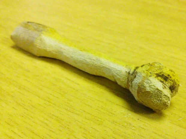 Tome un pedazo de sobra de espiga de las Asambleas de brazo y tallar hueso forma de fuera de él, asegurándose de dejar un poco de sobrante en el extremo.