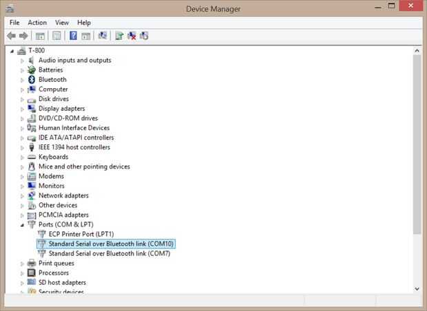 Una vez que los dispositivos estén sincronizados, busque en Administrador de dispositivos de su panel de control (en windows) y ver qué número de puerto com asignado el módulo de Bluetooth en la sección de "Puertos (Com & LPT)". Utilice un terminal serial, tal como masilla, para conectar a este puerto como lo haría cualquier enlace por cable serial.