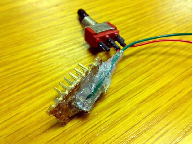 Los cables de la fuente de alimentación es increíblemente simple. Hice un pequeño trozo de placa perforada con 2,54 mm pernos encabezado que conecte las baterías, conectar el positivo de una al negativo de la siguiente. Te he demostrado integridad, pero si usted está usando una batería del RC no necesita tal artilugio.