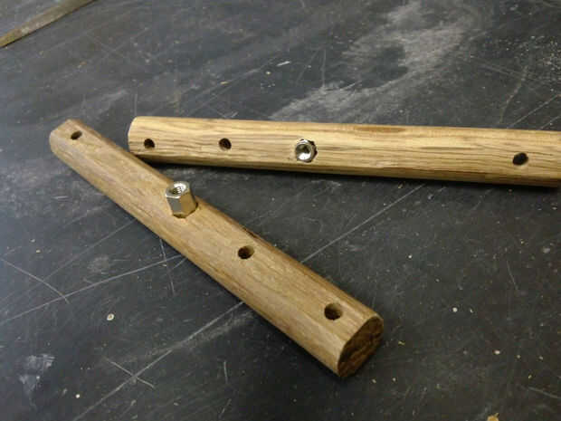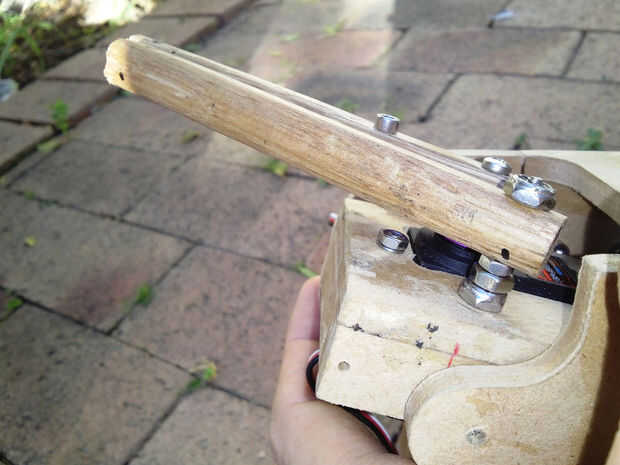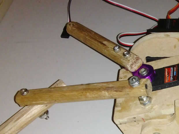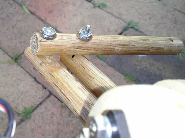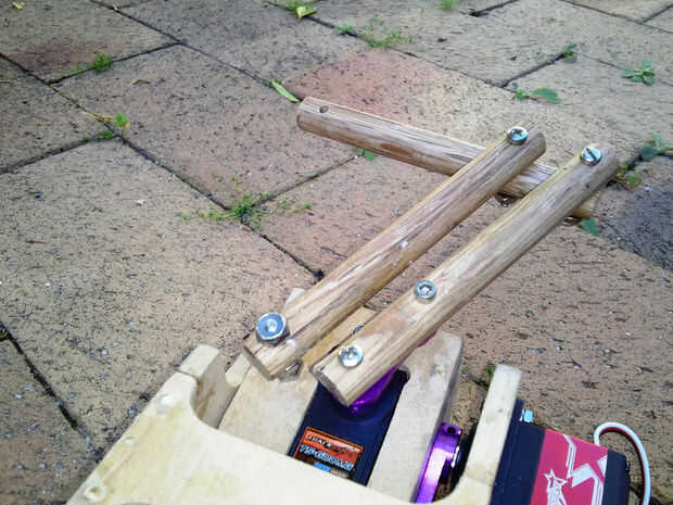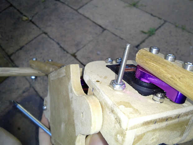 Habrán visto los brazos de barras de aluminio en algunas de mis fotos. Estos fueron mi primer concepto, pero probaron demasiado difíciles de trabajar con mis herramientas limitadas. Después de un poco de pensar que decidí utilizar tacos de madera de 12mm en cambio, eran grandes, fácil de trabajar con herramientas de mano y un montón lo suficientemente fuerte.