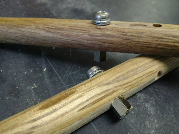 Para atar las barras paralelas al antebrazo usé tornillos largos (unos 30 mm, pero dependerá de tus tacos) con las tuercas Nyloc apretadas hasta justo antes de que comenzaron a causar fricción.