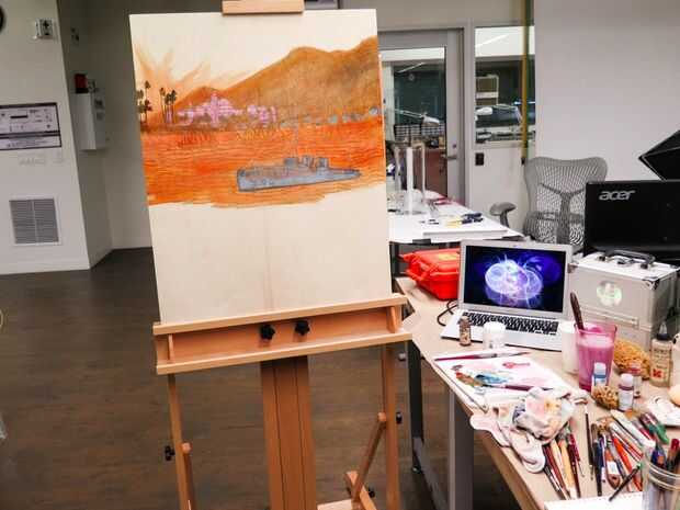 Me gusta todo lo a que pudiera necesitar antes de empezar diseñar. Creo que esto es así puedo analizar la mesa algo que podría necesitar y saltará hacia fuera y luego reacciono rápida e intuitivamente. También me parece que pinta mejor cuando estás cansado, dejas overthinking.