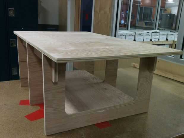 el marco de esta mesa de centro se hace de la madera contrachapada. se podría ser "pelado" con casi cualquier material. Esta es la segunda vez hice esta pieza. la primera i utiliza finos corto "retazos" de madera recuperada y montado s